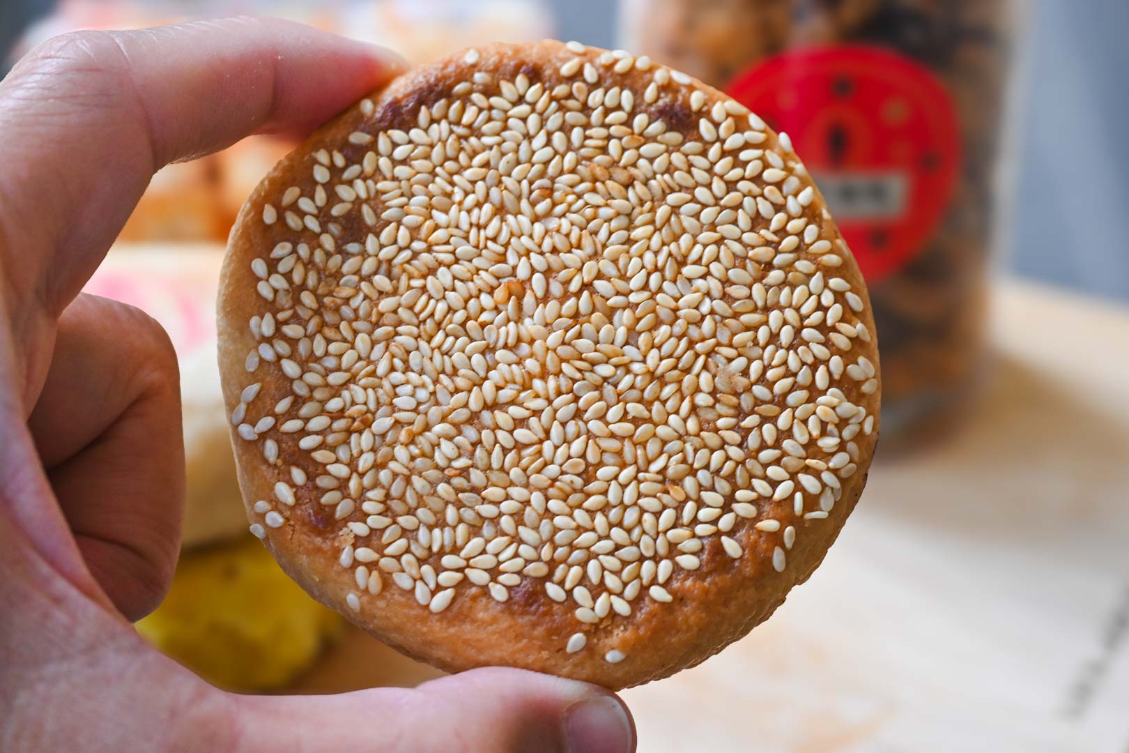 1935年發跡自淡水《三協成餅舖》,可說是大台北地區老字號的傳統餅舖,訂婚送禮必定試吃的口袋名單之一。小時候覺得這類古早味大餅吃起來的開心程度不如西式的奶油、蜂蜜蛋糕。長大後才慢慢了解,傳統大餅能屹立百年之久,靠的不是奶油拉花或造型,而是靠單純的材料,展示出鹹甜交錯純粹細緻美味。