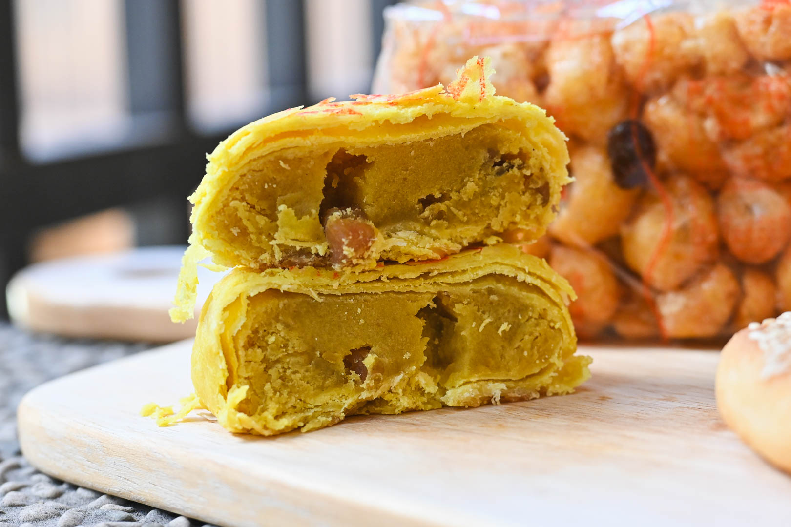 綠豆凸則是滿滿甜豆沙香氣,中間也是有包魯肉添增風味,但與咖哩酥、魯肉酥相比就少了很多,算是掛上點油蔥的鹹甜香氣來拉開層次,適合喜歡滿嘴豆沙甜蜜蜜的朋友。