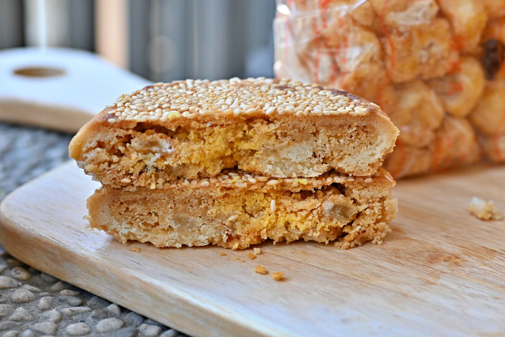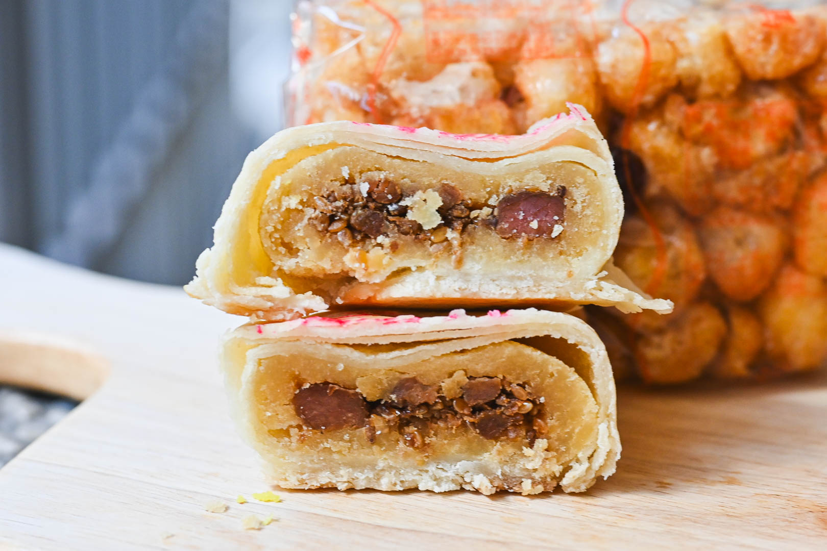 《三協成餅舖》厲害的地方在於,甜而不膩的綠豆沙與油蔥味明顯的魯肉,滷肉選用口感扎實瘦肉部位,內餡一點都不油膩,剛好襯托出豆沙綿密乾爽風味,吃完只有柔軟的酥油口感與蔥油香,好吃!