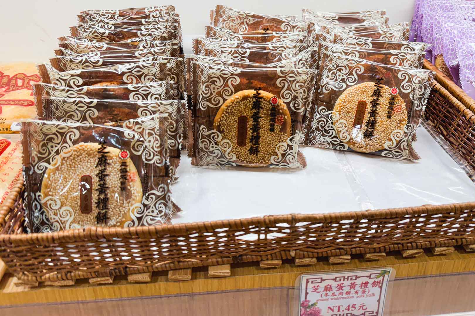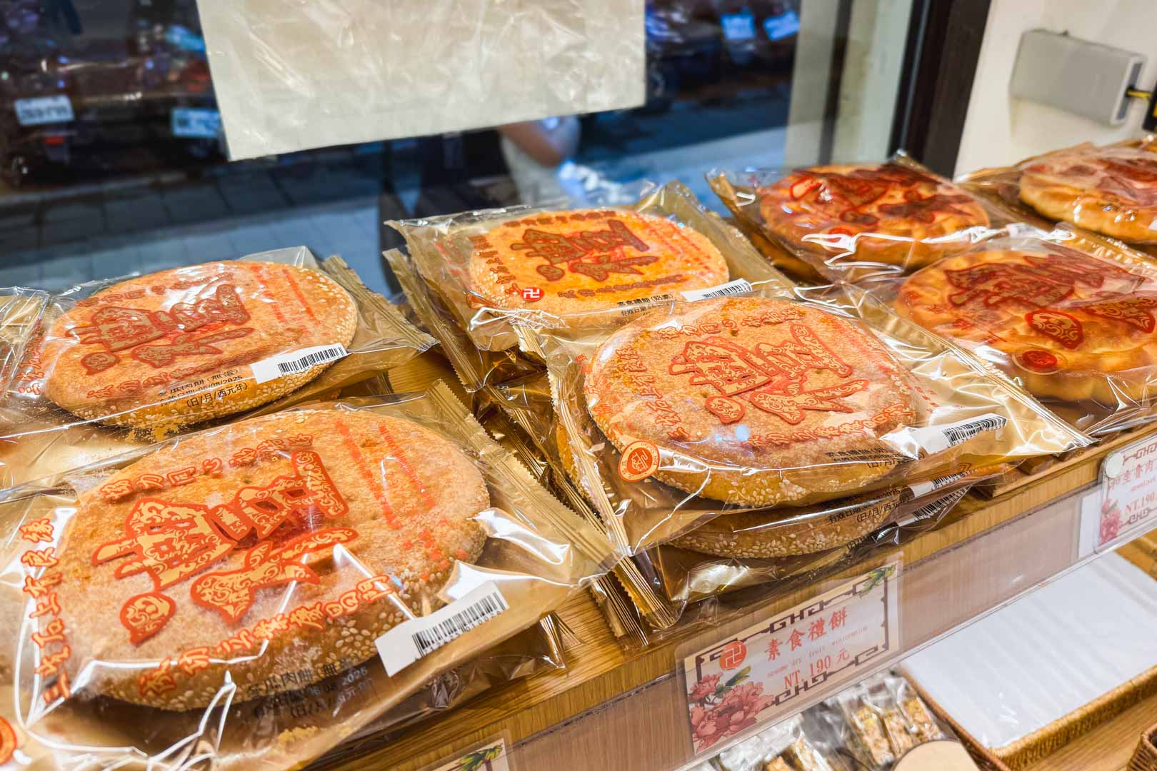 放在最顯眼的地方,來店客人一眼就看得到的就是一整區的大餅與酥餅,從傳統尺寸12兩包裝,到符合現代人3兩左右小包裝都有。